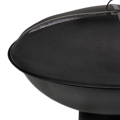 Constructed of strong cast iron and painted in a heat resistant matte black finish, this portable fire pit is perfect for adding both warmth and ambiance to outdoor gatherings. The wide diameter low bowl design of this fire pit allows plenty of space for building a serious and sustainable fire. An included base provides sturdy support and raises the fire up off ground surfaces. Also included is a matching color removable mesh spark screen cover.