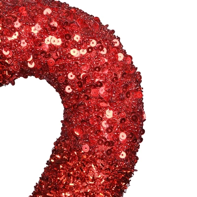 Simple and sincere, this heart decoration is covered in shiny red sequins that glitter and shine. It is wrapped with a red lace bow that doubles as a hanging loop. Display this happy heart during Valentine’s Day celebrations or give as a gift of affection to loved ones.